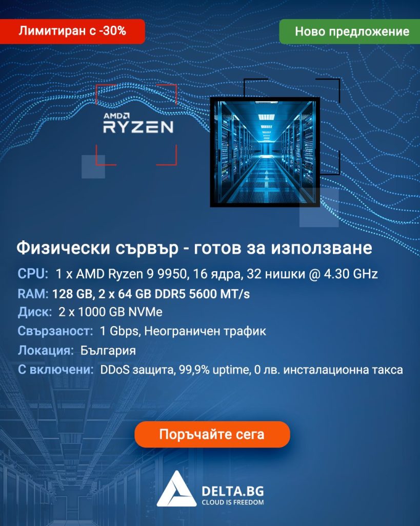 В търсене сте на наети сървъри с AMD Ryzen процесори? Вземете ги от Delta.BG